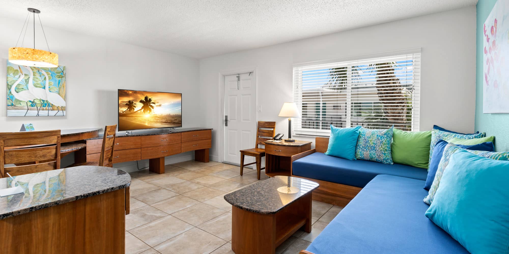 Our Garden View Apartments look out onto manicured lawns and lush gardens,with a partial view of the Gulf of Mexico. Featuring a separate bedroom and living area, they are perfect for those who want extra space to enjoy their beach getaway. The bedroom provides a private retreat, while the living room offers additional sleeping options – typically two Single Bahama beds or, in some layouts, a sleeper sofa. The fully equipped kitchen has everything you need to prepare breakfast, lunch, or dinner, giving you the flexibility to vacation your way in comfortable living space.