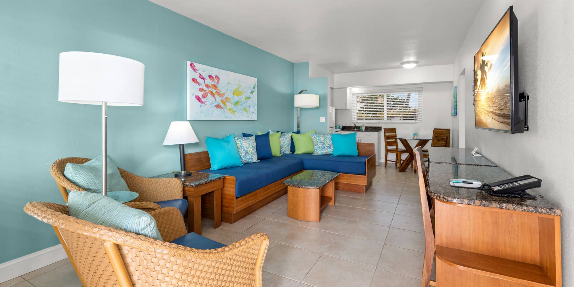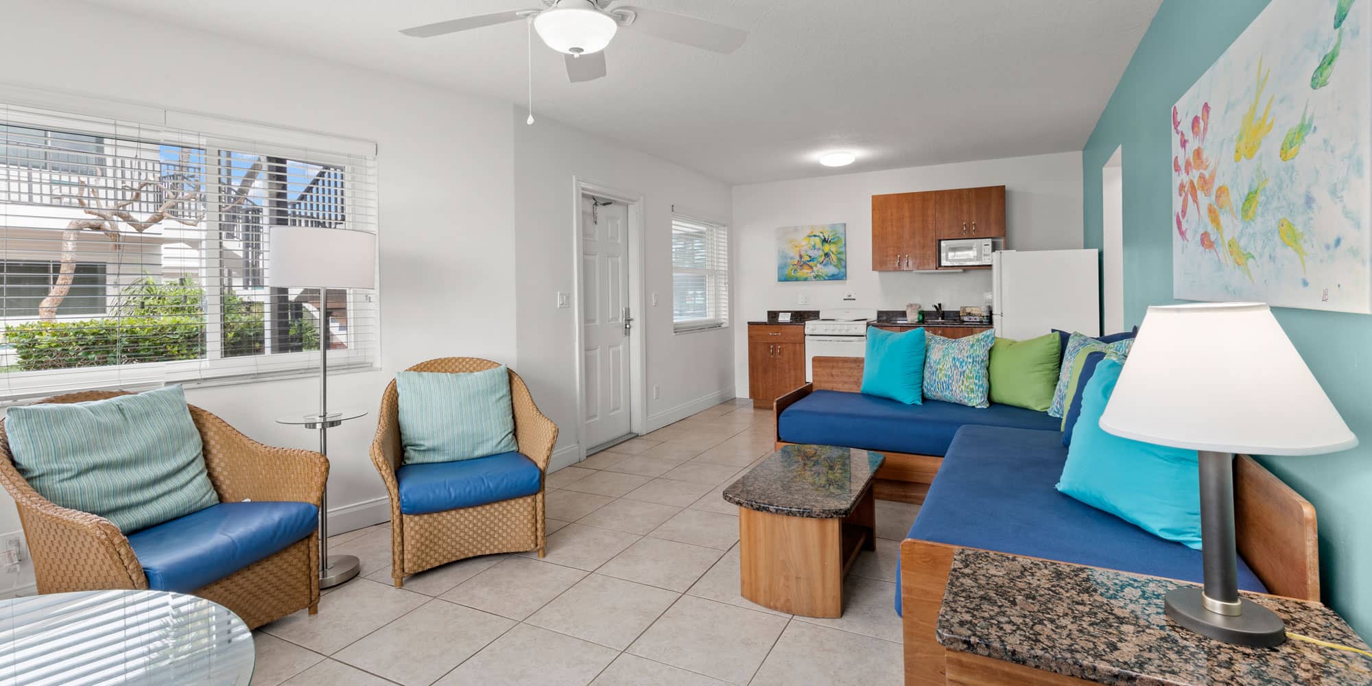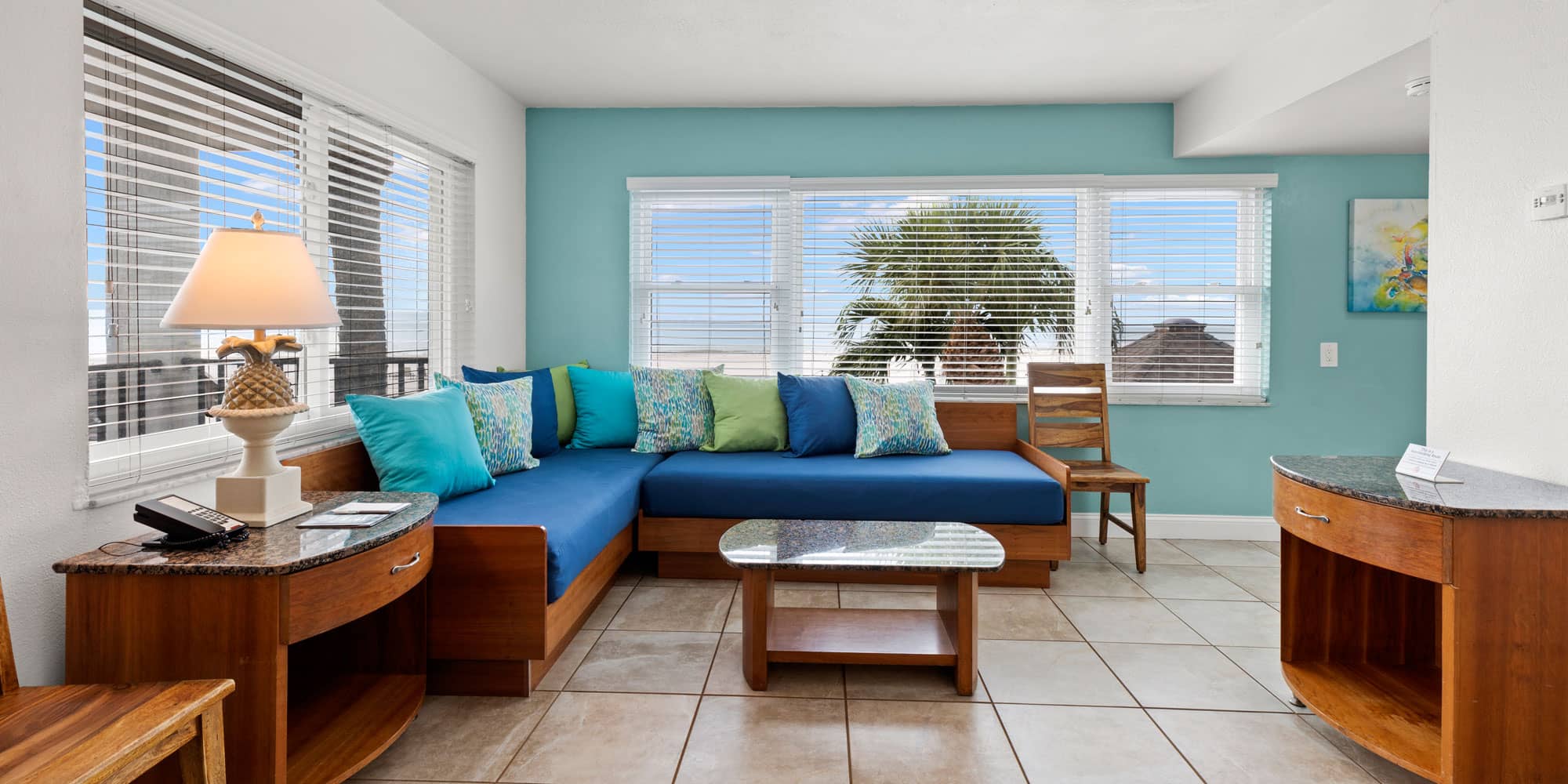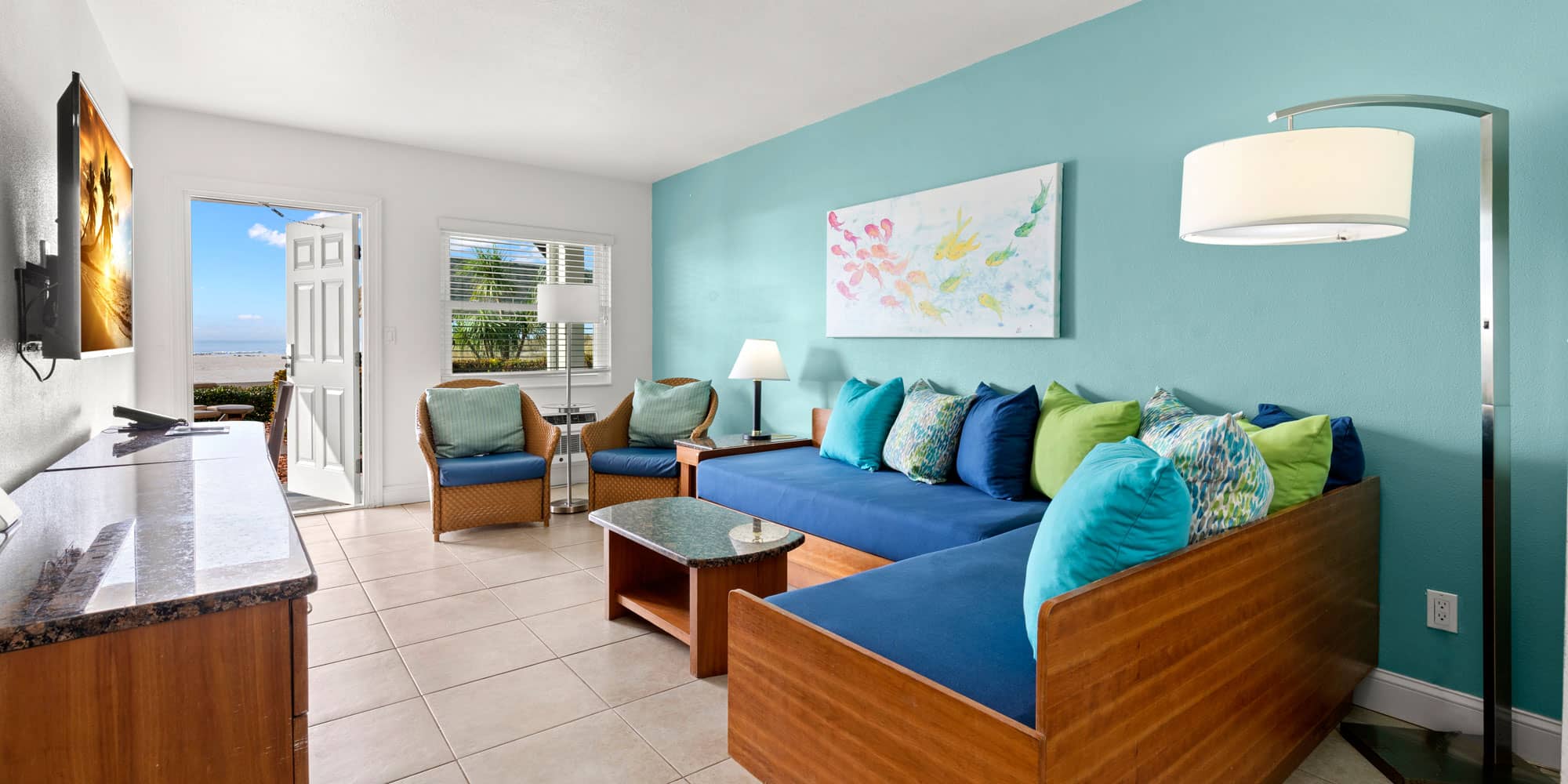 The Waterfront Apartments boast breathtaking views of the Gulf of Mexico while being just steps from the beach. Featuring a separate bedroom and living area, they are perfect for those who want extra space to enjoy their beach getaway. The bedroom provides a private retreat, while the living room offers additional sleeping options – typically two Single Bahama beds or, in some layouts, a sleeper sofa. The fully equipped kitchen has everything you need to prepare breakfast, lunch, or dinner, giving you the flexibility to vacation your way in comfortable living space.